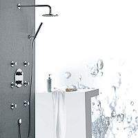As name suggested, Concealed Complete Thermostatic Shower System will complete with thermostatic shower valve, or Shower head, or bathtub filler or sliding rail handset or body jets. Each of them or some of them which depends on your shower perference. They provide completely solution to your thermostatic shower requirement.